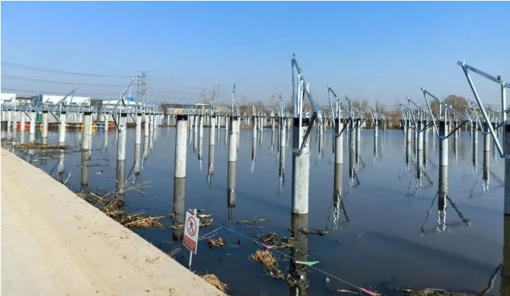 近日,泰兴市曲霞16MW鱼塘水面光伏发电项目初见雏形。未来,这里会形成水域上空安装光伏板进行发电,水下进行渔业养殖,实现资源立体化利用。
