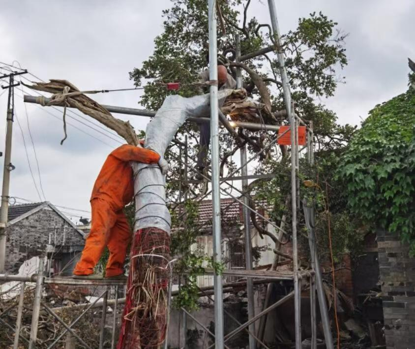 在江苏省姜堰中学校园东侧,一棵树龄1016岁的古银杏树越活越年轻,可谁想到,前几年因周边环境的影响,这棵古树到了衰竭死亡的地步。姜堰区组织林业专家现场勘察,提出复壮抢救方案,为古银杏“挂点滴”,并在周边设置护栏,派专人值守。给这棵千余年的古树,搭建了一颗年轻而强劲的“心脏”,为活力之城留下了发展的“绿色”印记。 从“一树一档”挂牌保护,到“一树一策”科学救护,再到“一树一人”日常维护。在姜堰区,保护古树名木理念已植入人心,通过构建区、镇、村组、网格员四级“树长”体系,创新古树名木保护“林长+树长”模式,每株古树名木都成了“文旅游”最显著的标志。