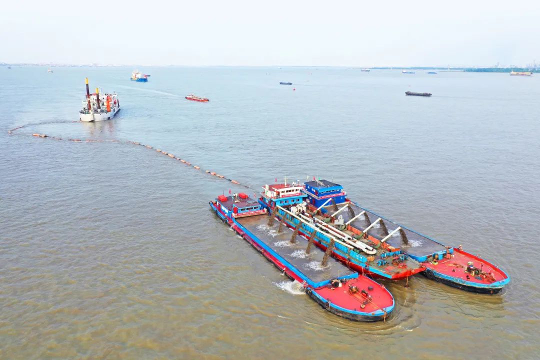 泰州市水利局水行政执法处负责人徐元忠介绍,长江河道蕴藏丰富的砂石资源,江砂素有水中“软黄金”之称,可作为重要的建筑材料或用于吹填造地和地基填筑,具有重要的经济价值。随着我国对长江河道采砂管理不断加强,禁采、限采范围不断扩大,江砂更成为市场上的紧俏品。在暴利诱惑和驱使下,非法采砂行为屡禁不止,对长江航运、航道安全以及生态环境造成严重影响。 2020年以来,泰州市主动策应长江采砂管理形势新变化,着力围绕缓解长江保护与砂石需求之间的矛盾问题,积极创新长江砂石资源可持续利用途径,全面推进实施长江河道疏浚砂综合利用项目。 泰州市长江福北水道和鳗鱼沙水道属于12.5米深水航道,每年都有大量砂石淤积。过去,长江航道疏浚工程一直采取抛砂施工方式,将疏浚砂石抛弃于指定的长江深槽水域,既造成了砂石资源的浪费,又影响了长江生态环境,甚至会形成航道二次回淤。长江航道疏浚砂综合利用项目的实施,不仅对长江生态保护产生积极影响,而且能够为泰州市提供稳定的砂石来源,缓解砂石市场供需矛盾,增加政府财政收入。