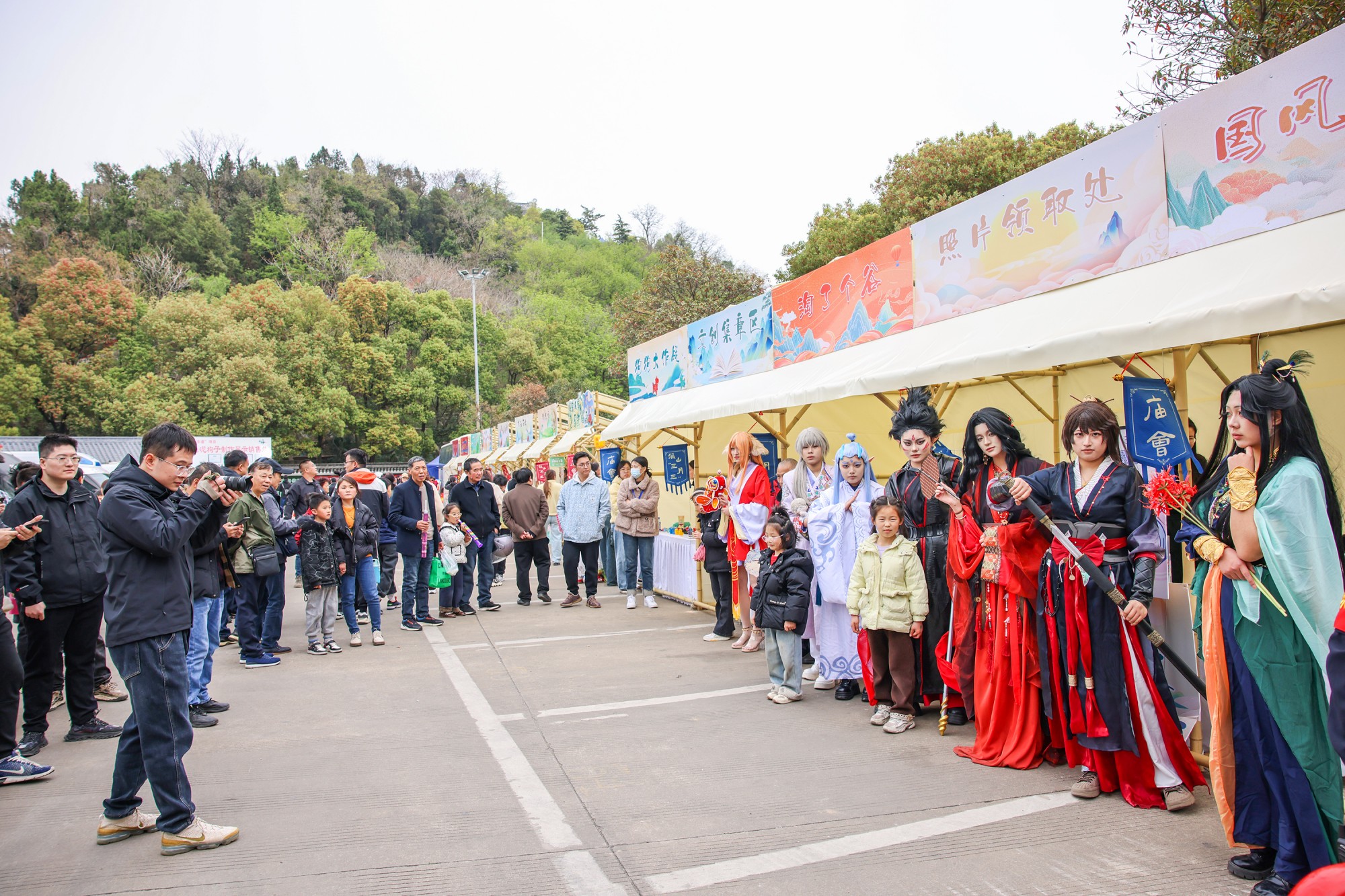 “三月三”传统庙也注入了不少时尚元素。现场,cosplay爱好者们带来的国风潮漫展颇为吸睛,大家扮成哪吒、敖丙等角色,与游客合影,带来沉浸感十足、穿越感满满的国风潮玩体验。游客们还可以到指定打卡点免费拍照、洗照片、DIY徽章,参与互动游戏领取孤山元素的文创小礼品等。庙会是文化传播、释放文旅消费活力的载体,今年,孤山镇制作“寻迹孤山”宣传册在现场发放,重点推介勤丰红色文化展览馆、孤山泥狗子文化馆、中国肉脯文博馆等10个特色点位,吸引大家前往打卡,一起领略孤山文旅魅力。 |