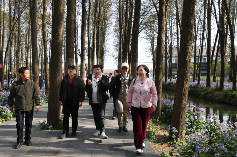 随后,诗词名家一行抵达里下河国家湿地公园。抬头可见杉树高耸入云,低头能赏二月兰绚烂芬芳。树枝上布满大大小小的鸟窝,清脆的鸟鸣声此起彼伏。行道两旁的河流中,小鱼若隐若现、自在遨游,构成“林中有水、水中有鱼、林内有鸟、河流回环、水杉林立”的立体式湿地生态景观。中华诗词学会原副会长杨逸明目睹此情此景,感慨万千。他告诉记者,这虽是自己第二次来到里下河国家湿地公园,但这里的景色依然让他心驰神往。“相比上次,这次天气更宜人,花儿开得更多、更繁茂,看到这样的景色,不赋诗一首实在遗憾!”游览结束后,他在朋友圈写下绝句三首,其一如下:“紫蕊花丛白鹭飞,绿烟深处染风衣。木排轻漾森林里,吸氧人从水上归。”接下来,诗词名家们还将继续在泰州采风创作,用诗句镌刻对泰州的美好记忆。 |
