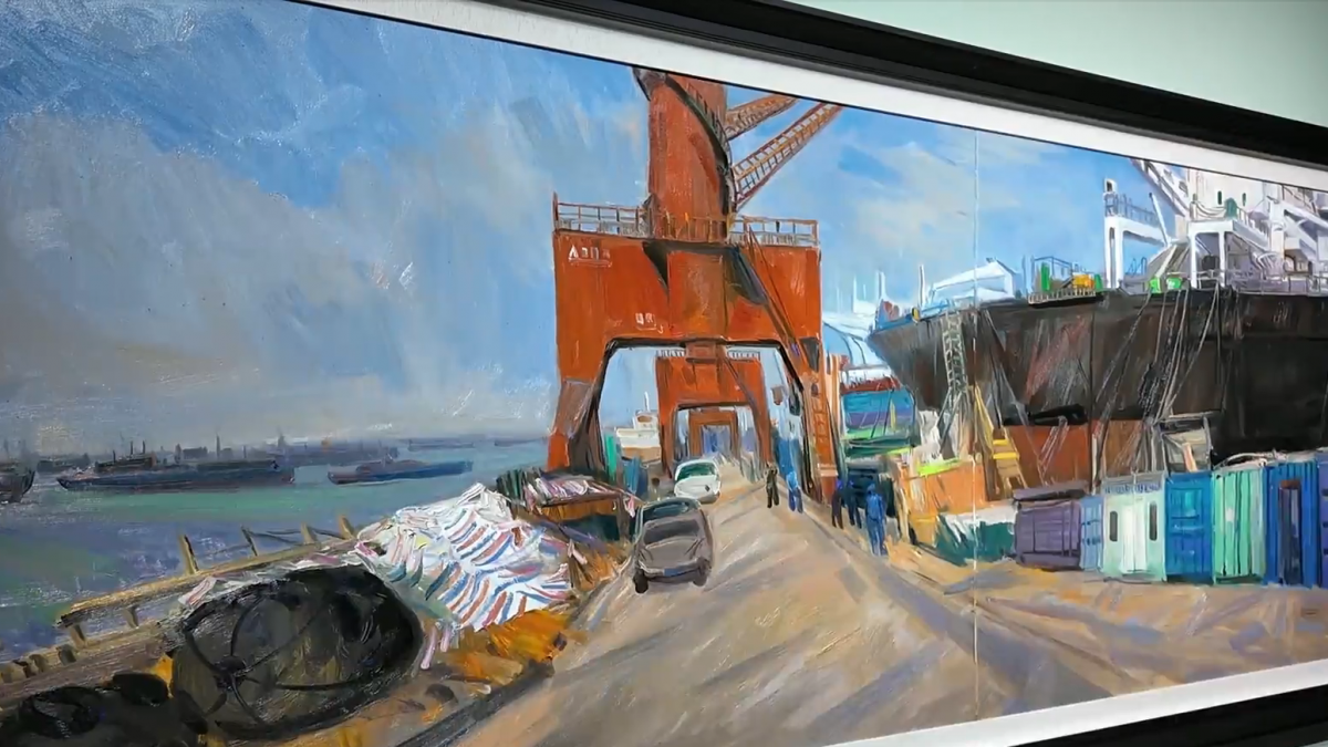 走进展览,中国美术家协会主席范迪安创作的4米巨幅油画《面向世界——新扬子造船之景》率先映入眼帘,磅礴的工业美学形成新的江岸风光,叙写泰州“大海新晨”壮丽篇章。 “枝叶关情诗书画名家采风活动作品展以“一人三作”的独特展陈方式,系统呈现了三十余位艺术名家笔下的泰州意象。 泰州美术馆副馆长、泰州市美术家协副主席兼秘书长梅德君说:“艺术家们用了4天时间,创作了不少作品,我们从中选了一些他们认为是比较好的作品。” 泰州市永安洲小学学生祝恬说:“从实地的景色,到纸上的风光,是两种完全不同的味道,这些作品给我们带来了全新的感受视角。”