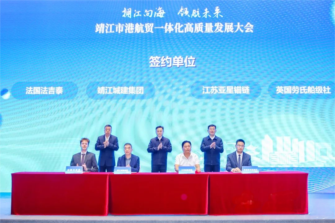 大明长江码头位于长江江阴水道北岸、靖江下四圩港河下游,由大明国际投资兴建,年设计通过能力达105万吨。作为长江经济带的重要物流枢纽,大明长江码头自去年7月开业后,依托4万吨级泊位和1200吨桅杆式起重机的硬件优势,构建起“装卸—仓储—转运”全链条服务体系。“自从去年12月取得港口经营许可证以来,今年一季度累计完成货物吞吐量38.74万吨,尤其是最近两个月增势明显。”大明长江码头相关负责人说,该码头正深度融入长三角港口群协同网络,推出包含多式联运、保税仓储、供应链金融在内的一体化物流解决方案,为区域先进制造业升级提供更强劲的物流支撑。 在今年4月11日举行的靖江市港航贸一体化高质量发展大会上,港航领域行业专家、企业代表齐聚靖江共谋合作。活动现场,进行了靖江市港航贸中心招商推介,法国法吉泰工程技术(上海)、英国劳氏船级社、船舶(海洋)产业技术研究院、交通银行、靖江中外运船务代理、靖江外轮代理、舟山一清能源、南通天泓能源等企业签约入驻该中心。靖江依托金融商务中心打造港航贸中心,将为港航上下游企业提供便捷高效的综合服务。