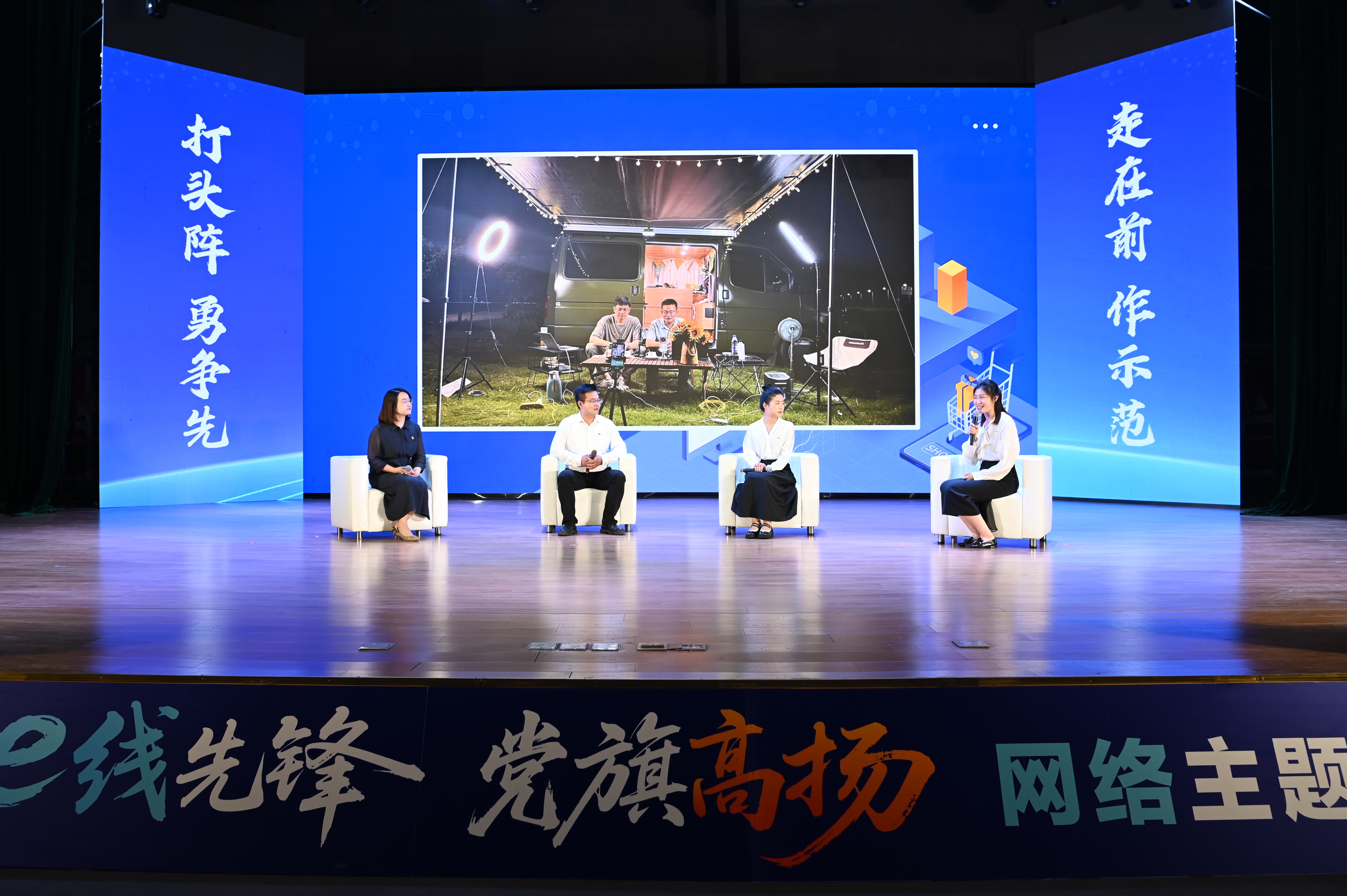 活动以创意短片《e线党旗红》开场,将现实党员身份与网络虚拟空间通过“屏幕内外”视角切换,围绕“正能量播客”“谣言粉碎机”“乡村主理人”“云端服务员”等,展现党员在线上线下双重空间中的责任担当。 活动现场发布泰州市互联网行业“e线先锋·党旗高扬”专项行动系列活动安排,以“铸魂强基”“正向领航”“协同共治”“风尚培育”“净网护航”五个板块,着力构筑健康向上、风清气正的良好网络生态。 在“e线先锋”沙龙对话环节,4位党员代表立足岗位职能,聚焦党员如何用“小屏幕”撬动“大能量”,围绕引领乡村振兴、主流舆论引导、助力基层治理、推动网络公益等内容,展开对话交流,分享见解经验,助力构建更加清朗有序、充满正能量的网络空间。