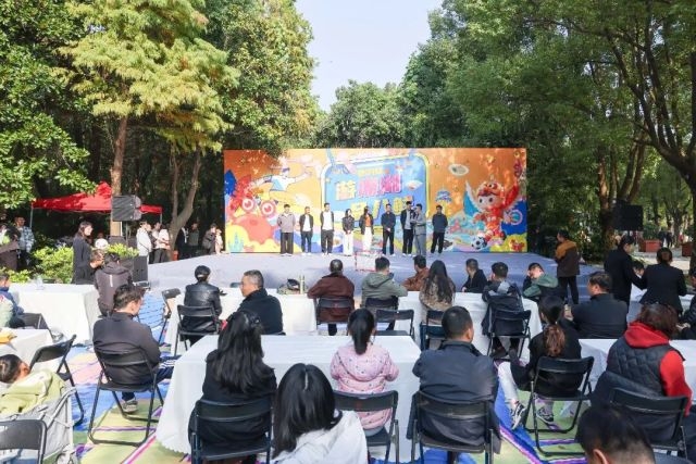 11月15日上午,景区暖意渐浓。湖畔乐队奏响轻快旋律,吸引众多游客驻足。第二轮暖场演唱将现场氛围逐步推高;“镇街8进4比赛自我介绍”环节,用充满创意的形式推介家乡。浓郁的本地文化特色成为留住游客的关键。罗塘街道《罗爷爷罗奶奶逛罗塘》生动展现市井生活,三水街道《腰鼓》表演铿锵有力,梁徐街道喊麦《沸腾梁徐》将现场气氛推向高潮……这些分布于全天的镇街推介与表演,已不再是单一的文艺节目,而是串联游客体验、展示地方特色的文化节点。