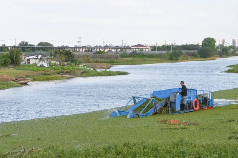 下午四时许,在朱庄村老头港河面,保洁员正操作自动打捞船,高效清理水草与漂浮物。该村党总支书记、村委会主任王华介绍,眼下水草生长旺盛,以往依靠人工清理,效率低、强度大。“如今有了这台‘神器’,能够减少用工30人,清理效率大幅提升,一天最多可清理50吨垃圾。”王华说。 这艘自动打捞船的使用,是城西街道推进治理策略优化的生动体现。值得一提的是,辖区内每条河流都经过专业“体检”,形成专属“病历”与“治理方案”。机械化、常态化的水面保洁,正是基于河道生态实际开出的精准“药方”,有效巩固了治理成果,实现水清岸绿的可持续维护。