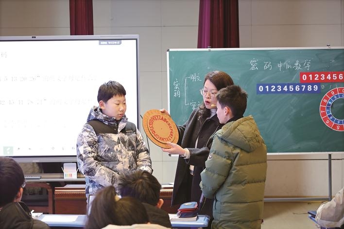 ▲省泰中附中初一数学组备课组长钱娟现场展示《密码中的数学》教研课。 王馨凤 供图 理论需回归课堂实践。作为活动的核心环节,省泰州中学附属初级中学初一数学备课组长钱娟与上海市侨光中学谈昕玮老师,分别呈现了教研课《密码中的数学》与《你的运动适量吗?》。钱娟将古典密码与现代加密原理融入数学探究,让综合实践教学变得可触可感;谈昕玮则从学生熟悉的运动健康话题入手,引导学生经历数据采集、公式计算、代谢分析到计划制定的完整过程,推动数学建模与健康管理相结合,体现数学源于生活、用于生活的价值。 课堂展示是“术”的演绎,专家讲座则重在“道”的引领。市教育科学研究院教研员钱小强、上海浦东教育发展研究院教研员胡素芬和上海市竹园中学特级教师王宗信,分别从不同维度分享了对“数智课堂”的探索。 钱小强认为,AI在教学中的应用应遵循“必要性、适切性、交互性”,避免为用而用,真正服务于学生思维发展与素养提升;胡素芬借助AI课堂数据分析教学成效,并从技术协同、过程记录、设计要点等方面,系统阐述了长作业评价改革的建议;王宗信结合自身实践指出,数学与AI融合时应保持学科的抽象性与逻辑性,坚持“以人驭技”,而非“以技代人”。