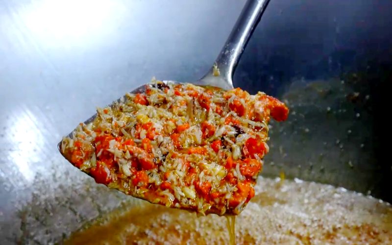 熬制阶段更是技艺的核心:可根据需求选择底油,菜籽油能让成品色泽鲜亮,猪油则让味道更加香醇。按照蟹肉、蟹爪肉、蟹黄蟹膏的水分含量由多到少,分步入锅熬干,避免水分影响风味与保质期。熬制中需精准控火,先用大火煮至大泡翻滚,再转小火不停翻炒防止焦糊,待气泡消散后加盐、糖调味,一碗金黄透亮、鲜香浓郁的蟹油便大功告成。每一个步骤的严苛把控,都是对匠心的最好诠释。 薪火不熄 乡愁味道的传承与期许 泰州蟹油承载的,不仅是舌尖上的极致鲜味,更有泰州人深埋心底的乡愁与匠人精神。然而,这门传统技艺曾一度面临传承困境:知晓手艺的人寥寥无几,年轻人大多不愿接手这份耗时费力的活计。“我曾迷茫过,怕这门手艺在我手里断了根。”纪忠萍坦言,每当想起婆婆手把手教她熬蟹油的专注模样,想起食客品尝后竖起大拇指的认可与称赞,她便坚定了守艺的决心。