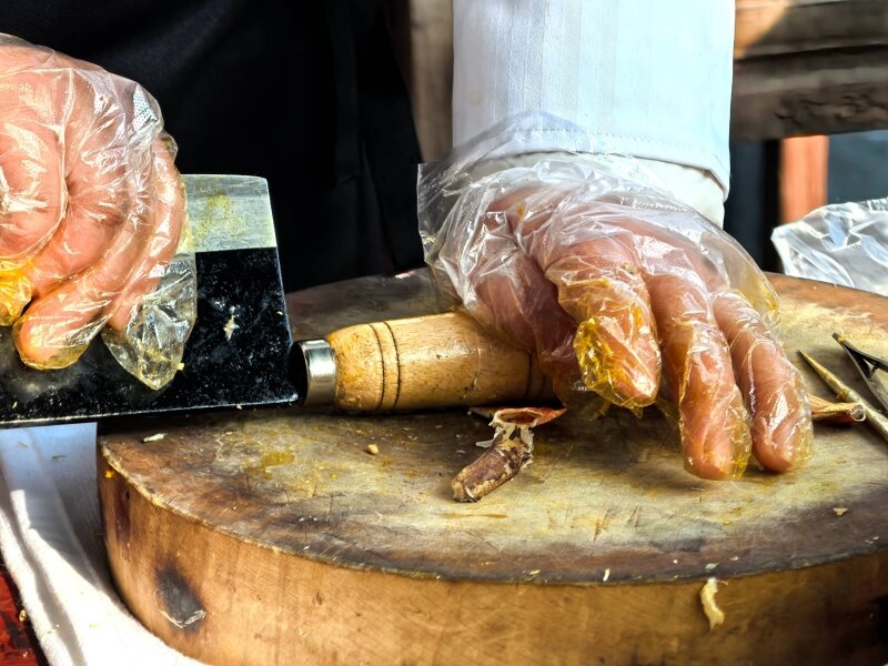泰州蟹油制作技艺的传承脉络,镌刻着四代匠人的执着坚守。相传,这门手艺的开创者,是老泰州饮服公司萃绿饭店的白案大师单如山。他凭借对食材的深刻理解与精湛技艺,熬制出的蟹油鲜香醇厚,成为当时备受追捧的美味。此后,这门技艺在家族中薪火相传,如今技艺的接力棒郑重交到了第四代传承人纪忠萍的手中。