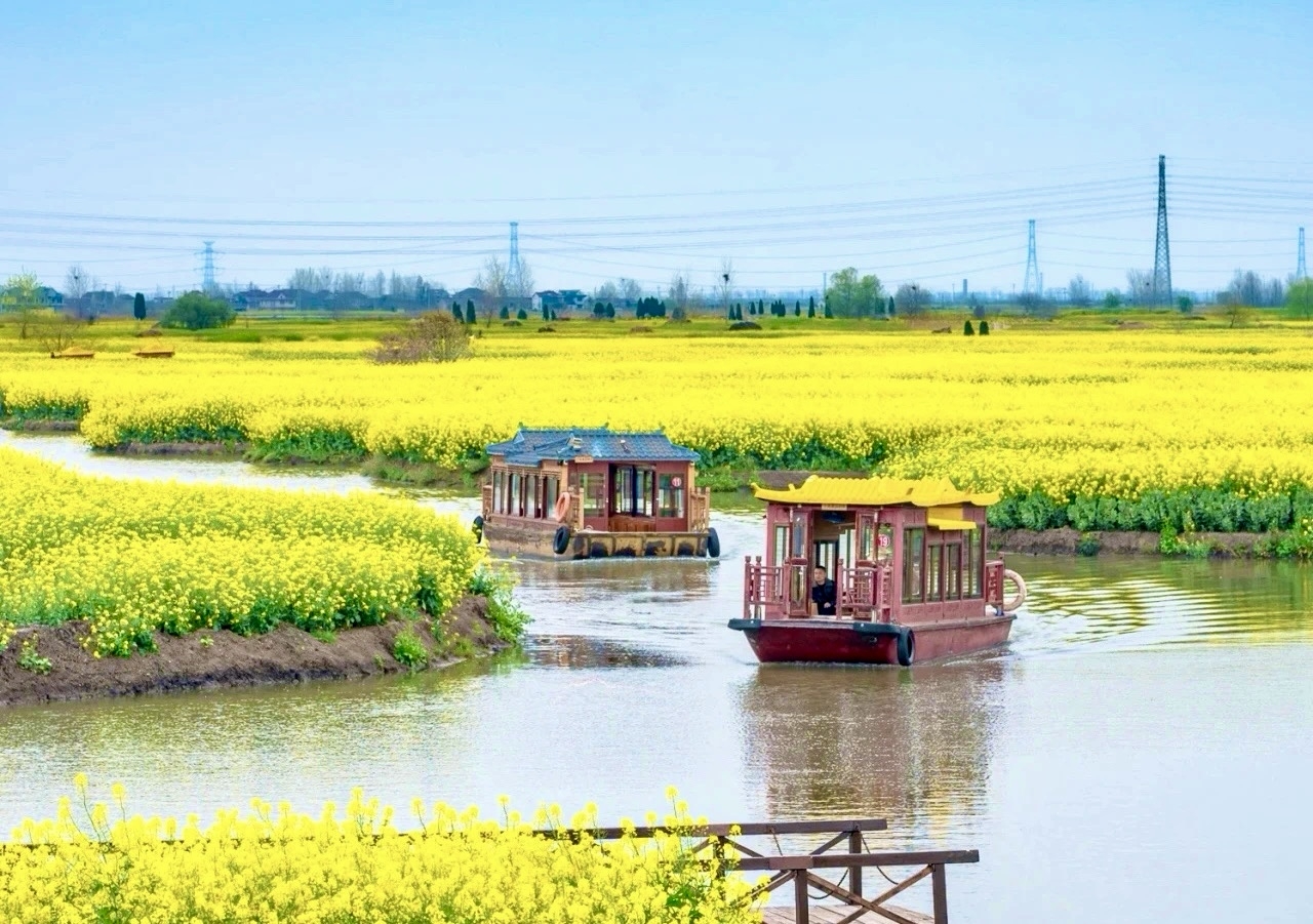 最能诠释这种融合的,莫过于千垛菜花景区的水上风景,也是打开垛田的最佳方式。每年春天,数十艘古色古香的竹泓木船穿行于“千岛”垛田之间,船桨划破金黄倒影,船娘哼唱水乡小调,游客乘船赏花。木船不再是陈列馆里的展品,而成为垛田景观中流动的灵魂;垛田也不再是远观的生态画卷,而是可进入、可体验的“水上生活空间”。 这种融合带来了实实在在的共赢。对木船而言,垛田旅游的蓬勃发展催生了巨大的市场需求——从昔日的农用船、小渔船,拓展至旅游画舫、端午龙舟,乃至影视道具、欧式帆船等高端定制系列。杭州西湖画舫、苏州老街乌篷船皆有竹泓印记,竹泓木船文化产业园区年交易额达7亿元,年产木船超15000艘,为周边提供1200多个就业岗位,让百姓“因木船而富,凭技艺而荣”。 对垛田而言,木船的融入让生态景观从“可看”升级为“可游”。游客乘船深入垛田腹地,停留时间延长了,消费场景增加了——赏花之后品尝烫干丝、蟹黄包,购买兴化大闸蟹、龙香芋,带动了餐饮、住宿、文创、种养殖等全链条发展。在东罗村,村民们将民居改造成民宿,垛田成了致富的“金饭碗”,2024年村集体经济收入达285万元,村民人均可支配收入34066元。 当木船遇见垛田,非遗便有了生长的土壤,生态便有了流动的载体。一垛一船、一景一艺彼此交融,让兴化的乡土之美有了魂,传统技艺有了根,也让这一方水土在传承中新生,在坚守中致远。