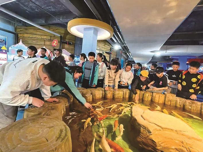 ▲孩子们参观姜堰溱湖极地海洋世界。 张慧颖 供图 春假第二天,凤城河畔的长岛枫叶岛变成了一片欢乐的海洋。豪华转马、摇头飞椅、碰碰车前,孩子们排起小队争相体验,尖叫声与欢笑声此起彼伏。最火爆的要数空中漂流,只见游船从高处俯冲而下,水花四溅,船上的孩子高举双手大喊“再来一次”。临水步道边,嫩绿的新芽与白墙黛瓦相映成趣,不少家长举着手机为孩子定格春日瞬间。“平时周末总被作业和培训班填满,难得有这样完整的春日时光,带他出来疯玩一天。”家长赵敏艳看着满头大汗的儿子笑着说。 春假期间,兴化千垛景区的金色花海里,游船穿梭如织。宿迁日报的小记者们乘船穿行垛田河道,一边数着掠过船边的白鹭,一边争相描述眼前的花海。“岸上的油菜花像金色的地毯,一直铺到天边!”一个孩子兴奋地喊道。