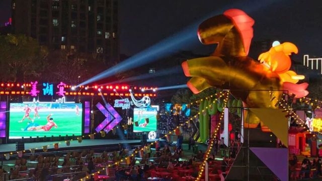 老通扬运河系西汉文景年间吴王刘濞所开,全长191公里,曾是盐运和漕运的黄金水道。现在,这条古运盐河与中干河一起蝶变新生,滨河绿道串起亲水平台和观景栈道,其中滨河健身步道入选“江苏最美跑步线路”。两河交汇处的“三水之环”——一座周长400米的钢结构环形桥,将两岸四角优雅地连为一体,并串联数条慢行步道、游乐设施。白天,男女老幼遛弯、跑步、嬉戏;夜晚,璀璨灯光里,骑行者擦肩而过,常有歌手弹唱、诗者吟诵,偶遇外籍友人竖起支架拍摄短视频。经营轻奢咖啡的曹先生说:“这里有人直播、有人消费,浓浓烟火气,像一个露天大客厅。” “两河”活力远不止于日常休闲。姜城最火的“苏超”第二现场、姜湖宴之乡村主理人PK赛、2026年全民健身迎新跑、2026溱潼会船节龙舟预热赛……让这里“嗨”成欢乐的海洋。城市音乐会、荧光夜跑、国风游园、美食长街、后备箱市集等场景,成为年轻人释放压力、寻找“情绪搭子”的新潮去处。