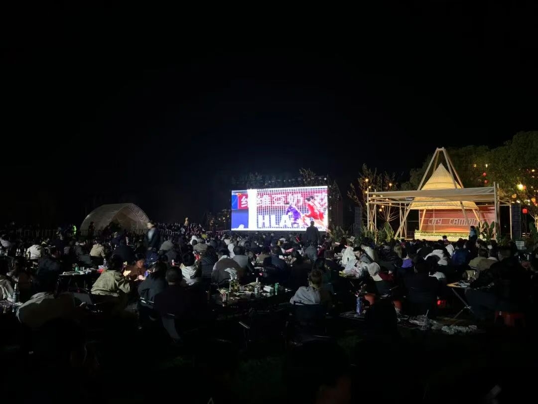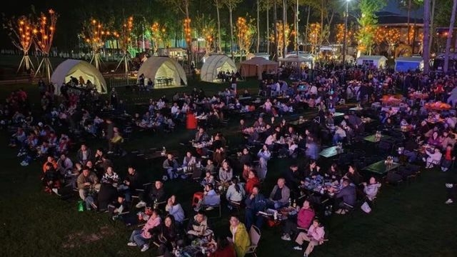 天目禾家秉持“自然之上做加法”,依托原有林地植入轻量化、体验式的业态:林下咖啡、亲子绳网、自然手作工坊……春假期间又推出“禾家·趣野”系列活动,涵盖农事体验、自然手作、西周文化复原等项目,同步推出亲子卡、研学券、欢乐包三重优惠,让青少年在亲近自然中收获成长。到了夜晚,结界门、路面捕捉投影、萤火虫激光等亮化元素交织成梦幻光影,主题装饰与景观小品精致出彩,随手一拍就是大片。每到周末,一些市民游客纷纷来此安“营”扎寨、亲近自然。
