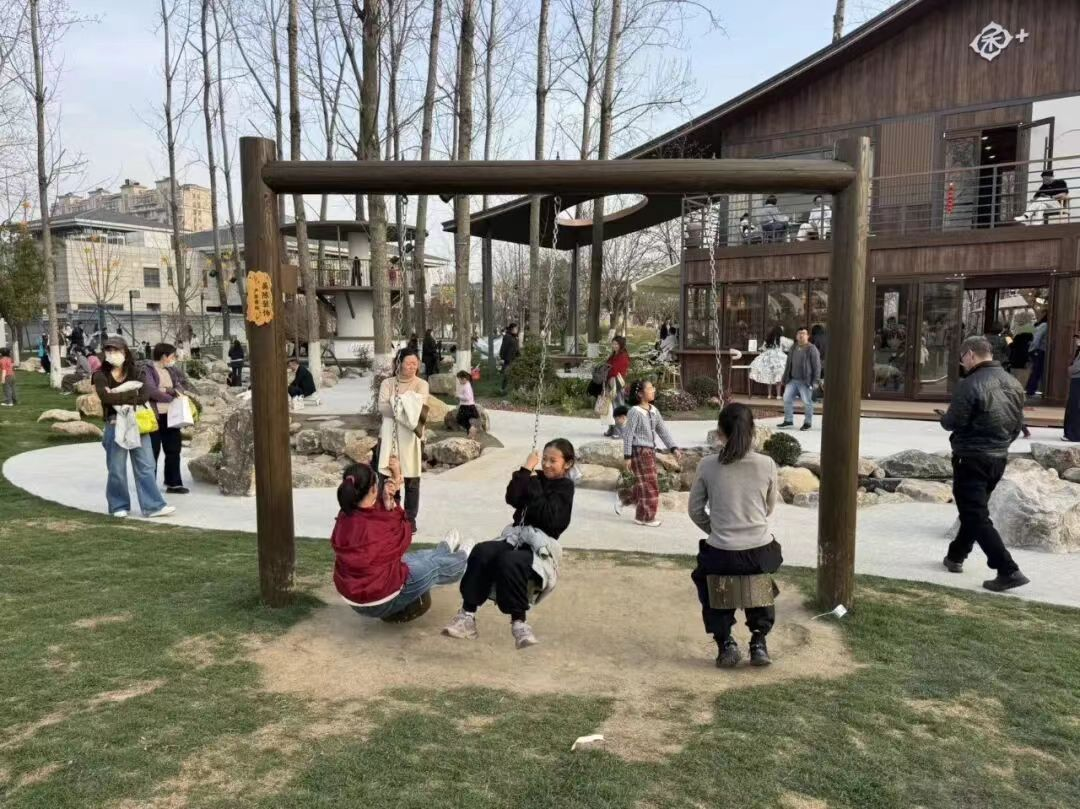 4月19日下午,泰州市民王女士带着女儿在“绳网部落”里攀爬嬉戏,丈夫则在一旁的咖啡馆里喝着咖啡,透过落地窗看着妻女。王女士说:“以前这片树林就是一块普通绿地,现在成了全家人能待半天的好地方。” 姜堰新晋“网红”地标——天目禾家,位于城北天目山遗址东侧,占地约150亩,今年正月初一开园即巅峰,热度一路“狂飙”,春节假期累计接待游客8万人次,成为姜堰探索“公园+消费”融合发展的样板。