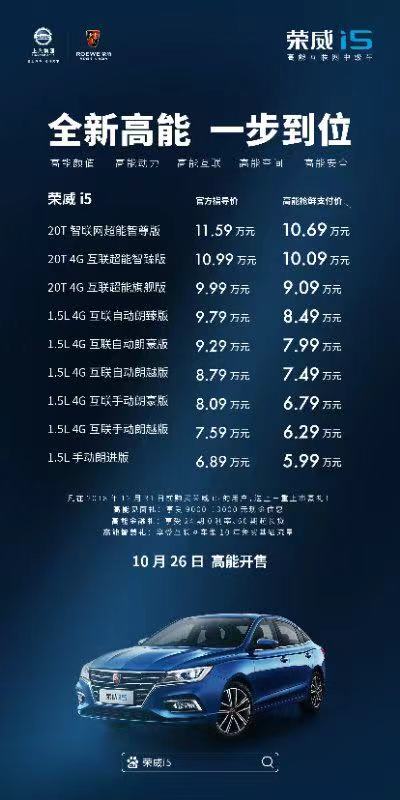 全新高能荣威i5正式上市 高能抢鲜价5.99万起!
