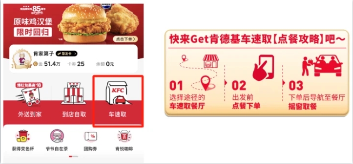 同时,肯德基还通过技术手段提升了备餐和取餐的协同效率,大大减少了用户的停车和等待时间,以其无比流畅的点餐体验,提升了消费者的满意度和便利性,满足消费者的点餐需求。