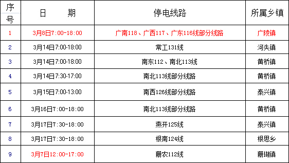 注:以上停电遇雨顺延,详情请洽江苏电力客服热线87992358