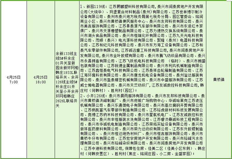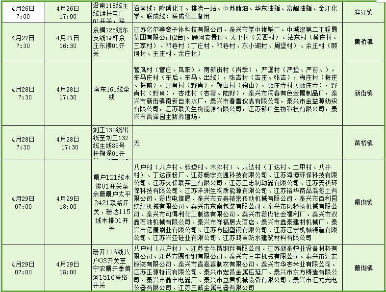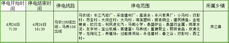 停电公告(04月24日-04月30日)