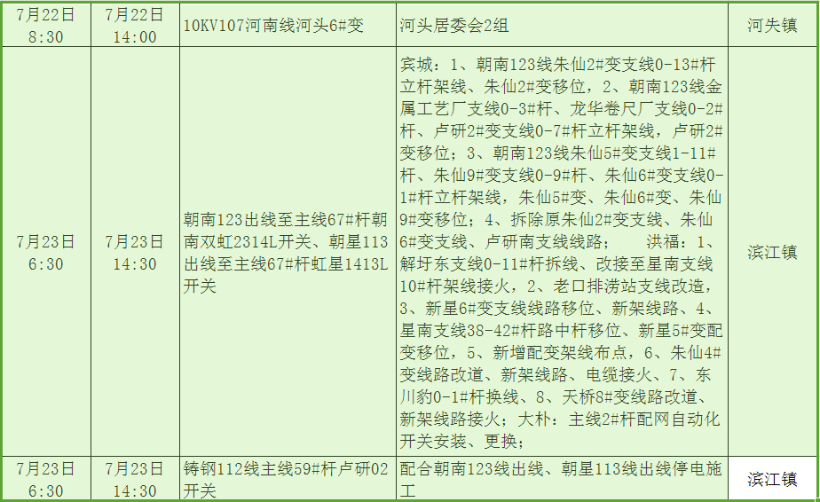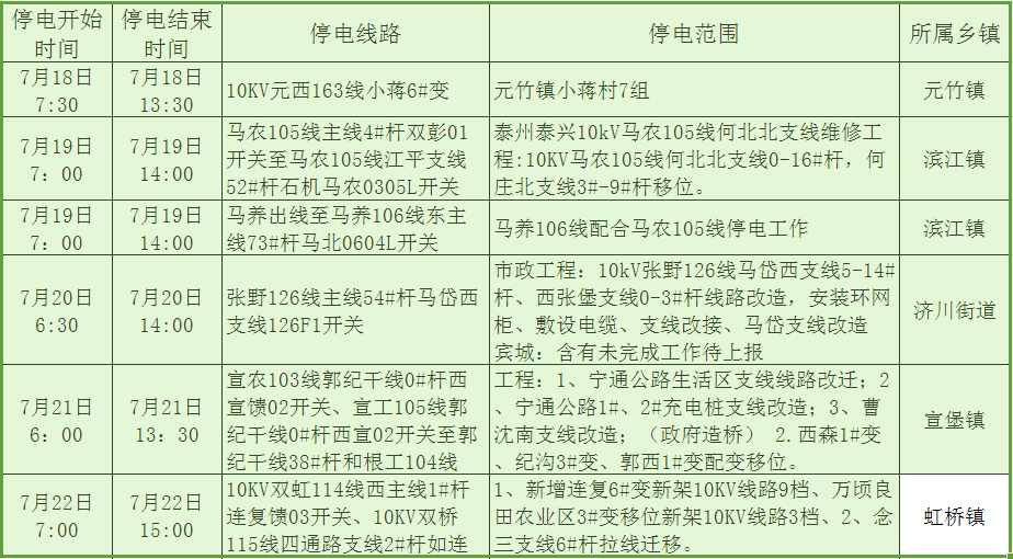 注:以上停电遇雨顺延,详情请洽客服热线87622222