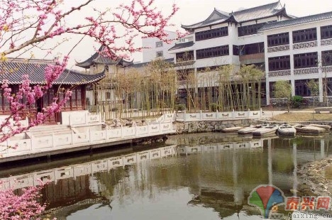 【古典建筑】仙鹤湾风光带建设者、设计者工于谋划,将房地产开发融入园林建设,使得古典建筑成为仙鹤湾风光带不可或缺的一部分。古典建筑群的建设者也没有因为工程造价高而降低对建筑品位的要求,在建筑的立面、进退、配色等方面严格把关,精益求精,细化每一个节点,力求不落俗套,使得古典建筑群成为仙鹤湾风光带精致的衬景。 【百鹤字碑】碑廊位于风光带中部,下沉朝东,倚水而建。碑体采用印度红花岗岩石料,基部用蘑菇石衬托,高94厘米,南北总长36米。碑名题写者为省政协副主席陈宝田(时任中共泰州市委书记),100个不同风格的“鹤”字由12位泰兴籍或曾在泰兴工作过的获得省书法家协会会员资格的书法家泼墨挥写而成。碑跋由泰兴市建设局立。 【隆盛拱桥】隆盛桥古已有之,具体建于何年、毁于何年不详,原址大体位于今隆盛巷东尽头。重建隆盛拱桥,祁愿泰兴昌隆盛达。拱桥造型设计借鉴于扬州瘦西湖二十四桥的风格,钢筋混凝土结构,上部用砖、石砌筑,外轮廓舒展流畅、古朴典雅。明月夜,站在桥上,栏杆拍遍,恰似置身诗画境界。