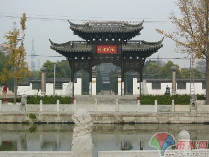 【古牌楼、奎文阁、鲲化池】据《泰兴县志》载,奎文阁又名文昌阁,始建于清康熙五十年,后乾隆二十年、二十八年两次修缮。阁基甚高,共两层,外呈六角形,中祀魁星,故又称魁星阁。鲲化池建于明代隆庆元年,半圆形水池,直径38.57米,块石砌筑,池周围装有石栏,雕有精美图案。古牌楼始建于南宋文宗绍兴年间,元末毁于兵火,明洪武三年故址重建。古牌楼又称“笔字架”,概其形似一笔搁于架上;横批“金声玉振”,题写者为泰兴籍书法家、浙江省书法家协会会长、浙江大学美术学院教授王冬龄;东西两侧牌坊分别叫做“礼门”、“义路”。 【古洗钵池】泰兴城内古时有座广福寺,遗址在今泰兴国际大酒店东部。始建于唐光化二年(889年),为著名禅林。因寺旧有弥勒、慈氏、文殊、大悲、普贤、释迦、地藏、观音、罗汉、吉祥等十院,故又名十院寺。寺后有池曰洗钵池,为神僧法响洗钵处。传说他能将斋钵翻转洗涤,法响又称伏虎禅师。唐时泰兴地界尚有虎害。法响设斋召虎,虎至而顺伏不动,法响以杖击其背和腿。虎受到惩罚,从此虎患绝迹。如今,洗钵池之名尚在,但其池已经湮没。2003年3月12日,清华大学美术学院教授程允贤、李念祖(泰兴籍)联合创作的伏虎禅师塑像由北京运抵泰兴。