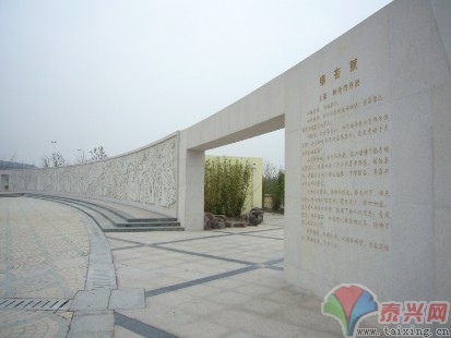 泰兴是闻名遐迩的银杏之乡,古老的银杏树和银杏文化在一方热土蓬勃繁衍、生生不息。以银杏树为主要绿化品种,以银杏文化为主线的银杏主题公园,更是做足了银杏文章。公园总体分“一轴、一湖、两广场、三大景区”空间景观序列,各景点由环形游览线串联而成。公园北部是开阔的下沉广场,由银杏主题浮雕墙与中兴大道围合而成,形如一片展开的银杏叶。进入公园首先映入眼帘的是长24米的弧形标志墙,由中国书法家协会副主席、江苏省文联副主席言恭达手书的“泰兴银杏公园”六字熠熠生辉,书体浑厚苍劲,足显功力。标志墙两侧各有一石质花盆,直径3米,重约10吨,由整块石料修琢而成,堪称一绝。广场地面由彩色地面砖铺就,组成若干银杏叶图案。银杏叶层层相叠,繁茂兴盛,喻意银杏故土昌隆发达。广场南端为银杏主题浮雕墙,是以广场中轴线为对称轴的两扇弧形壁画,由广州美术学院、广州隽美公司联合设计制作。浮雕壁画分左右两幅,每幅长77.8米,高3.2米,全部采用12公分的花岗石,雕刻深度达5公分。浮雕以唯美浪漫的表现手法,铺就了一幅极富泰兴地方特色的优美画卷。其中A幅以《银杏的传说》为主题,叙述了泰兴广为流传的银杏仙子的传说以及银杏在泰兴土地上生根发芽、图腾繁衍的过程;B幅以《美好的家园》为主题,展现了银杏故乡的人民在这方热土安居创业、和谐安康的场景。浮雕壁画配以《银杏赋》一首,为泰兴籍国家一级编剧刘鹏春撰写。词赋分上、下两篇,清新隽永,气韵灵动,与浮雕壁画相互映衬,相得益彰。