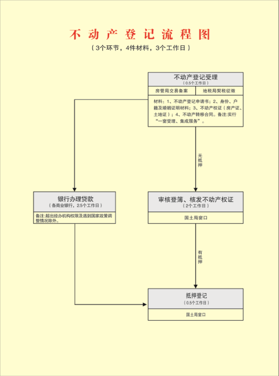 5.实行银行电子开户。人行泰兴支行不再审核企业开立基本账户所需的纸质营业执照等相关文件,对于需要留存的企业公章印模等资料采取在线调取电子印模的方式获取。 6.建立信息共享机制。按照政务部门共享、企业开办服务和后续监管服务三个层次,梳理编制企业开办服务《信息资源共享共用表》,政府部门、金融机构、中介机构和企业根据不同授权,分别采用每日推送(实时推送)、在线调用(在线核查、授权调用)等不同方式共享涉企信息资源。积极推动涉企服务部门接入市场监管信息平台和政务服务网,实现涉企部门之间的信息共享。 (二)不动产登记 1.一窗集成办理。市国土局、房管局和地税局在市政务服务中心设置“不动产登记综合受理窗口”,按照不缺、不漏、不重复原则,制作统一的申报材料目录并对外公布,统一收取交易、税收申报和不动产登记所需全部材料,集成办理不动产交易、税费缴纳、登记等所有业务。 2.精简优化流程。市国土局、房管局、地税局和市政务办,按照“依法依规、便民利民”原则,参照并联审批模式,科学、合理制定集成办理流程,简化办理环节,压缩办理时限,提高办事效率,承担相应责任,共同商定各环节办理时限并对社会公示和承诺。 3.实现信息共享。市国土局、房管局、地税局、住房公积金中心、金融机构等相关部门按照信息共享要求,实现交易、税务、登记信息及公积金、金融机构审批信息自动交换、实时共享。开放与房地产开发企业、金融机构的不动产登记业务在线申请平台,实行办件网上申报。 (三)施工许可 1.提前介入,推行“预审+代办”制度。按照《关于新征用地建设项目容缺受理提前介入管理暂行办法》和《关于推行企业审批事项“全程代办制”的通知》要求,大力推广“预审+代办”制度,提前介入项目前期准备,提供全程代办服务,对相关审批环节进行预先审查,在各项条件具备后一次性换发正式批准文件或者证件。 2.多评合一,优化各类评估流程。按照《关于企业投资项目多评合一的实施意见(试行)》要求,整合项目前期所涉及的节能评估、环境影响评价、水土保持方案、安全评价、地质灾害危险性评估、地震安全性评价等评估办理流程,将串联模式调整为并联模式,项目评估及手续办理周期控制在35个工作日内。积极探索区域评估制度,进一步提高评估事项的办理效率。 3.多图联审,提升施工图审查效率。持续优化“互联网+联合图审”,在推行和实施多图联审的基础上,积极推进无纸化审图、网上审图,实行设计文件统一接收、集中办理、分工负责、并联审查、统一反馈,一般项目7个工作日内完成审图,技术特别复杂的不超过10个工作日,不断提高施工图审查效率和审查质量。 4.并联审批,整合施工许可办理环节。在《泰兴市企业投资建设项目并联审批实施办法》基础上,根据政策法规调整情况,进一步加大并联审批力度,将项目建设前期办理流程分为立项供地、规划设计、施工许可三个阶段,市国土局、规划局、住建局为每个阶段的牵头部门,按照“整合流程、一门受理、信息共享、限时办结”的方式实行并联审批。 5.信息共享,大幅压减审批材料。以优化再造后的流程图和各环节申请材料目录为基础,提炼涵盖各部门、各环节的信息共享目录,依托政务服务网和政务外网实现办理流程相关环节之间的数据联通和信息共享。 三、工作要求 1.加强组织领导。实施企业营业执照、不动产权证、施工许可证“三证照”办理流程优化工作,是深入推进我市“放管服”改革、营造便民利企营商环境的重要举措,各部门要统一思想,提高认识,切实加强组织领导,把这项工作摆在突出位置,不等不靠,勇于担当、快速行动,主动作为,确保各项改革举措顺利推进。 2.强化协作配合。各部门要牢固树立大局意识和全局观念,密切协作,加强联动,形成推动改革的强大合力。牵头部门要发挥好牵头抓总作用,及时协调解决改革中的具体问题,各有关部门要按照责任分工,细化工作方案,健全工作机制,明确工作措施,狠抓工作落实,7月底前实施“三证照”标准化流程试运行。 3.严格问效问责。“三证照”办理流程优化工作是全省简政放权创业创新环境评价的核心内容,各部门“三证照”流程优化工作列入部门(单位)2017年绩效考核评价体系。市改革办、市审改办要加大督查力度,对履行职责不到位、工作成效不明显的单位,启动追责机制,强化制度刚性约束,确保改革各项举措落地见效。 附件:1.开办企业流程图