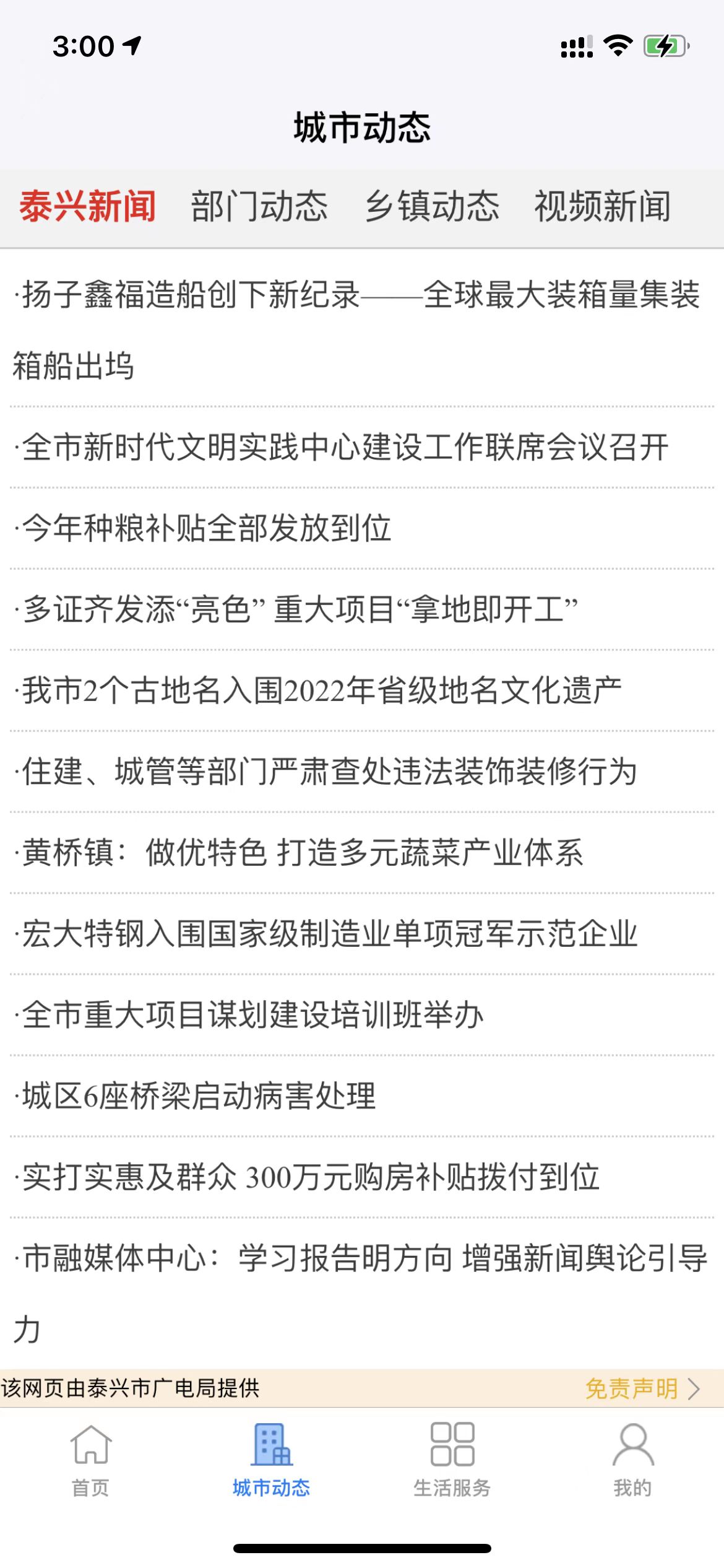 新闻资讯服务 泰兴一卡通联合本地具有权威及内容深度的新闻发布平台“智慧泰兴”,向市民实时推送大家关注的最新政策、城市信息。