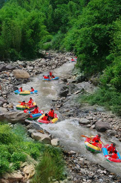 早指定地点集合,车赴浙西临安。抵达后游览被旅游界誉为浙西山水压轴之作的【大龙湾景区】(挂牌80元/人已含,景区小交通20元/人未含,游客现购)。这里崇山峻林、茂林修竹、奇石侧立、飞瀑如帘。上接蓝天白云,下衔飞瀑激流的“天潭映碧”;听急流歌弦,看满目苍翠的“龙吟闻涛”;巨石横突如鳌鱼之口,恰有吟龙似珠的“鳌鱼吐翠”,还有“桃源胜景”、“三女飞瀑”、“云雾山寨”将神话美、原始美、山水美、民俗美融为一体!后去龙井峡体验激情的【龙井峡双人皮筏漂流】(挂牌180元/人已含,景区小交通10元/人未含,游客现购)。该处水流湍急,水纯泉清,乘伐浪漫奔放,漂流刺激惊险,男人一路欢笑,女人一路尖叫,适宜男女青年嬉水玩耍。(因漂流会受天气、水量等影响,根据实际情况安排龙井峡漂流或凉源峡漂流或月亮湾漂流, 如因天气等不可抗力因素导致不能漂流,则更换为游玩【琴湖飞瀑】景区)