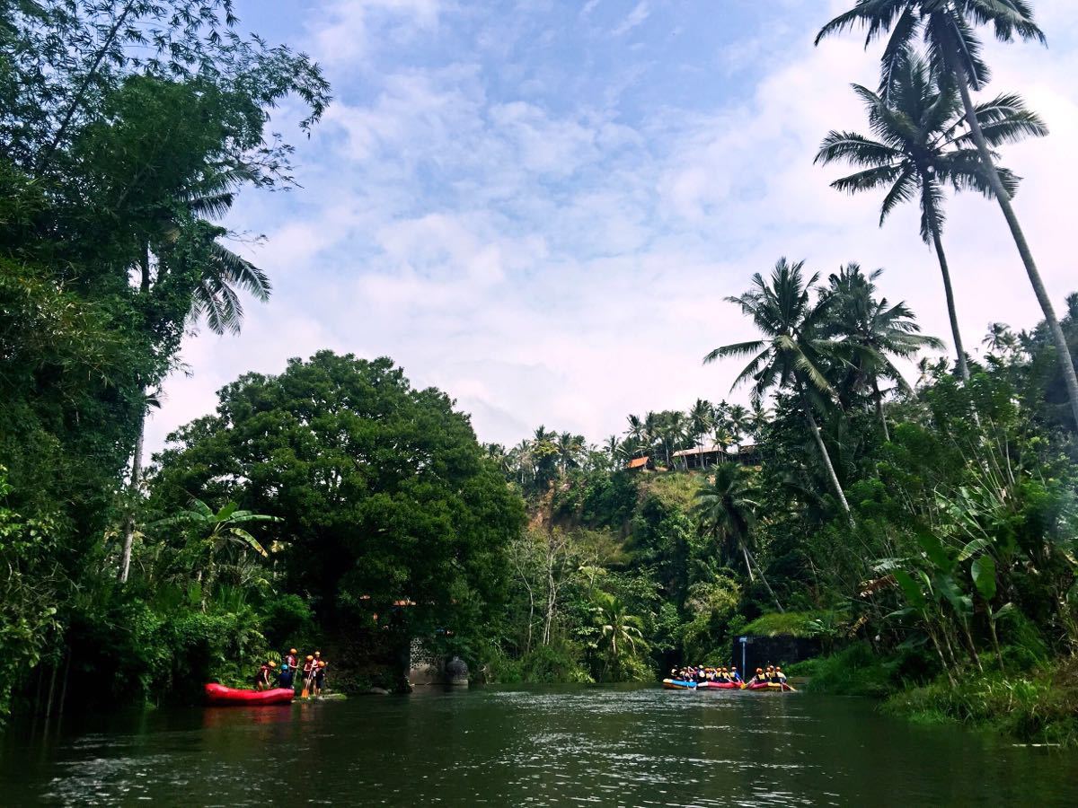 【阿勇河漂流】(约60分钟)【赠送价值60美金】(Ayung River)亦叫爱咏河,迎面而来的景观,忽而是茂盛的树林、忽而是辽阔的田野;忽而是阴森的蝙蝠洞;忽而是美丽的瀑布,变换无穷,令人赞叹不已。难怪许多游客感慨,到了阿勇河漂流,才知道真正的巴厘岛。 温馨提示: (1)漂流限定7岁以上- 65岁止(凡患有心脏病、高血压、孕妇、均不适宜)超出此限制者! 若要参加.请填写切结书! (2)漂流的时候,请客人按照自己的承受能力参加活动。 (3)本行程内的漂流为赠送行程,如因个人原因不能参加者,权当放弃,费用不退。 【乌布脏鸭餐】【独家赠送1张传统服装留影】这个名字的来源有二:一是鸭子散养在巴厘岛的水稻田里,吃野外小虫小鱼,常常搞得浑身泥巴;二是鸭子在烹制过程中,经过油炸、烧烤,表皮看起来颜色黑黑的,似孚被弄脏了,所以称之为“脏鸭”。 餐厅面对稻田,坐在开敞的餐厅里,清风吹来稻田清香,让您真正品味大自然的味道。酥脆烤鸭配东南亚最香蒸饭,特色碳烤串烧,唇齿留香。