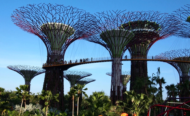【滨海湾花园】(约45分钟)新加坡的新地标,曾赢得了2012年世界最佳建筑奖(Winner of WorldBuilding of the Year 2012),由温室(花穹和云雾林室内门票140元自理,我社可代订)18棵超级树、文化遗产花园、植物世界、蜻蜓湖和翠鸟湖等组成。