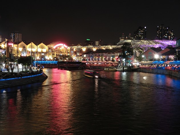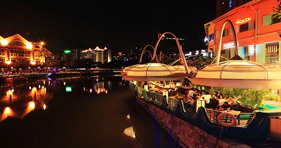 【夜游新加坡河】(约30分钟,含游河船票)前往码头搭乘游船。新加坡河贯穿整个城市,是新加坡的生命之河。我们自克拉码头登上游船,沿新加坡河顺流而下,通过加文纳桥(乌龙桥)和安德逊桥,经过新加坡最繁华的金融区、旧国会大厦、皇后坊、浮尔顿酒店、鱼尾狮公园、维多利亚纪念堂、滨海艺术中心等建筑,到达滨海湾后调头往克拉码头驶回。一河两岸,夜色下高楼大厦灯火璀璨。闪烁与耀眼的霓虹灯把城市的夜晚装点得缤纷多彩,狮城的夜景尽收眼底。