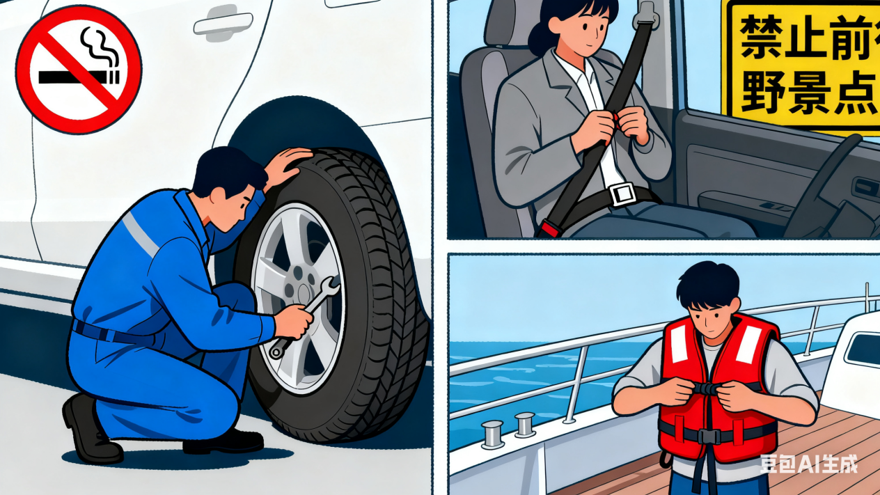 安全筑防线:自驾游前全面检查车况,杜绝疲劳、酒后驾驶。乘坐交通工具时全程系好安全带,乘坐游船需按规定穿救生衣。不前往未开发、缺乏安全保障的“野景点”,慎选高风险项目,注意安全用火。