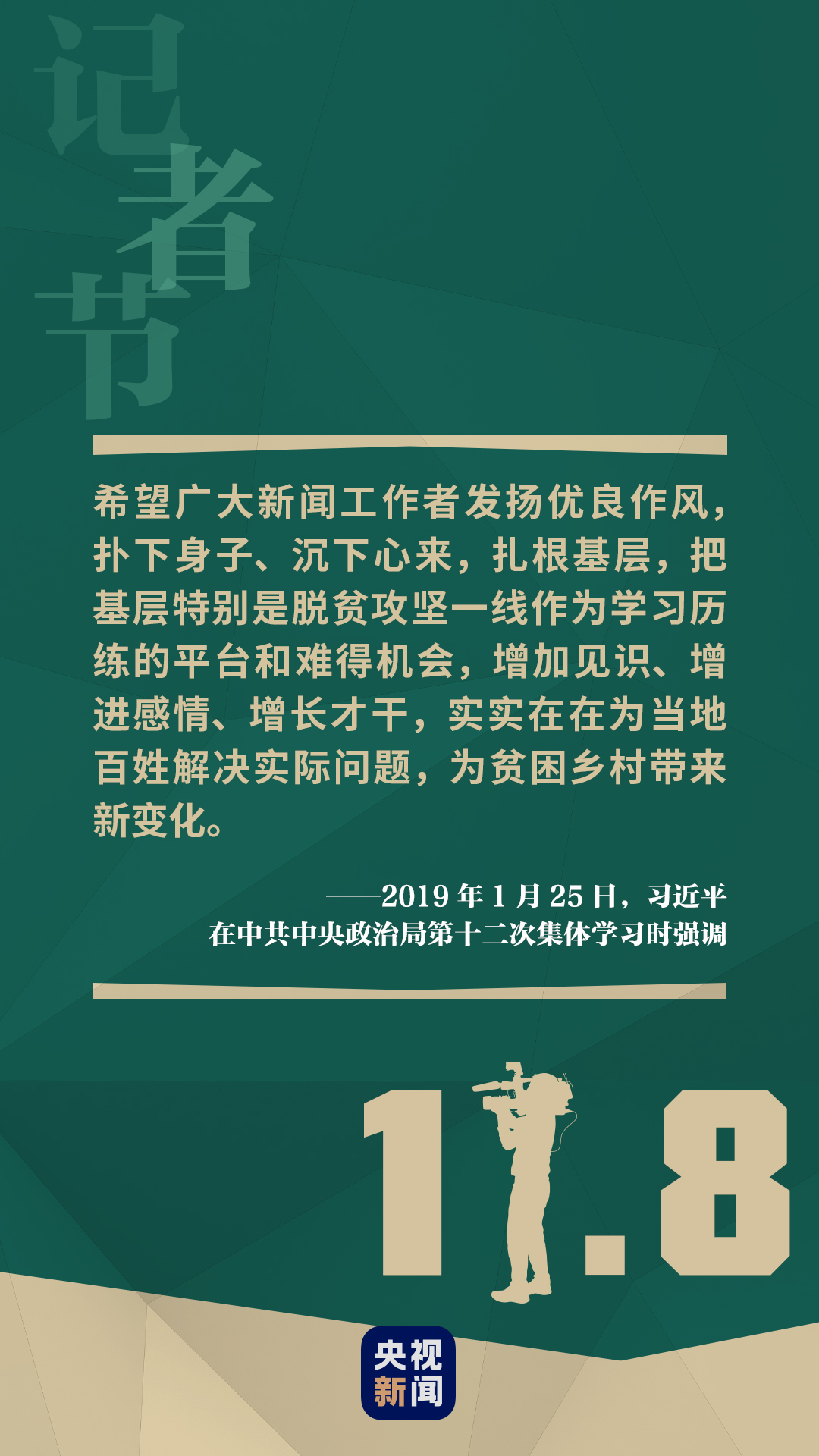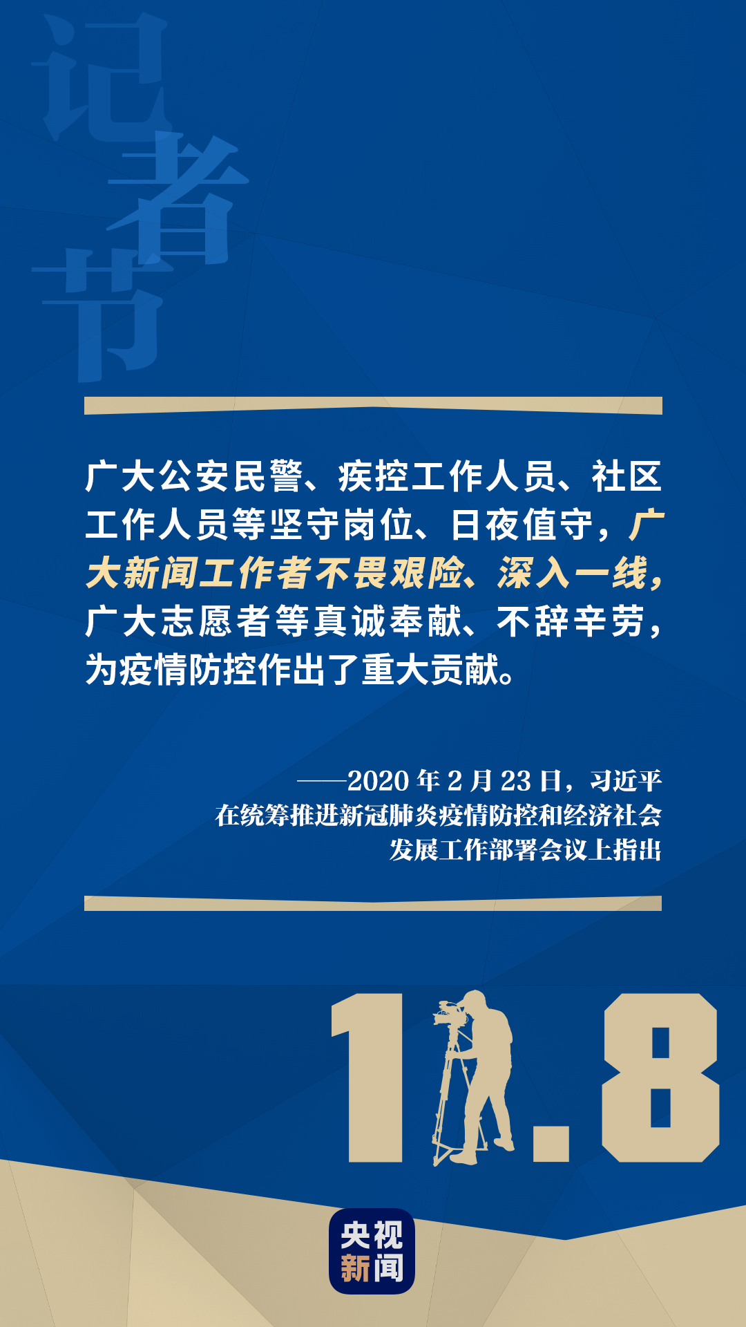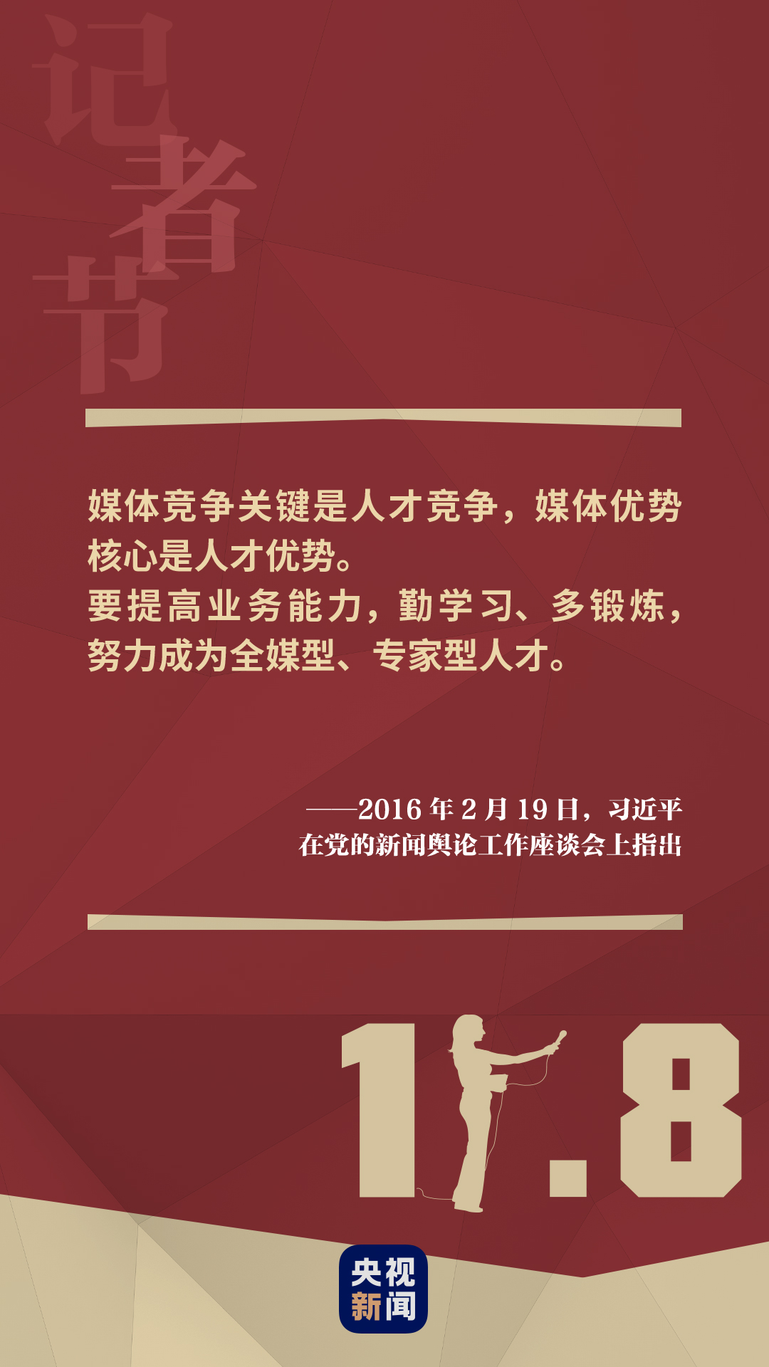 11月8日,第21个中国记者节。 注定不平凡的2020年,让这个记者节显得格外不同。在惊心动魄的战“疫”一线,在决战脱贫攻坚战场,在奋进新时代、开启新征程的各个领域,百万新闻工作者记录着奋发昂扬的中国不平凡的步伐。 “希望新闻工作者发扬优良作风,扑下身子、沉下心来,扎根基层”;宣传舆论工作要“更好强信心、暖人心、聚民心”;“要不断增强脚力、眼力、脑力、笔力”…… 一直以来,习近平总书记十分关心新闻工作者,并提出了许多殷切希望。 “做党的政策主张的传播者、时代风云的记录者、社会进步的推动者、公平正义的守望者。”广大新闻工作者牢记习近平总书记的嘱托,守正创新,用心、用情向你我讲述一个又一个身边的故事、精彩的中国故事。