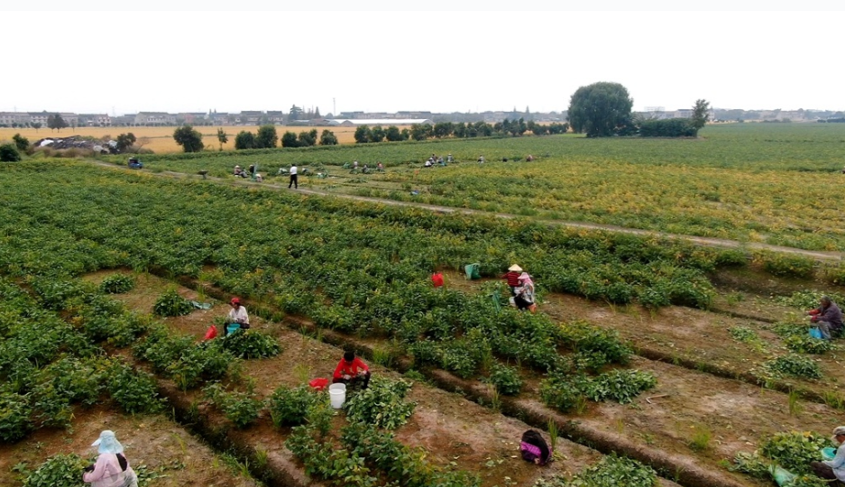 眼下,正是秋收时节。在泰兴市根思乡新港村的大豆种植基地,务工村民在地里熟练地收大豆。“收豆子多的,务工收入可以达到100元一天,大家比较满意。”村民封明珠说。