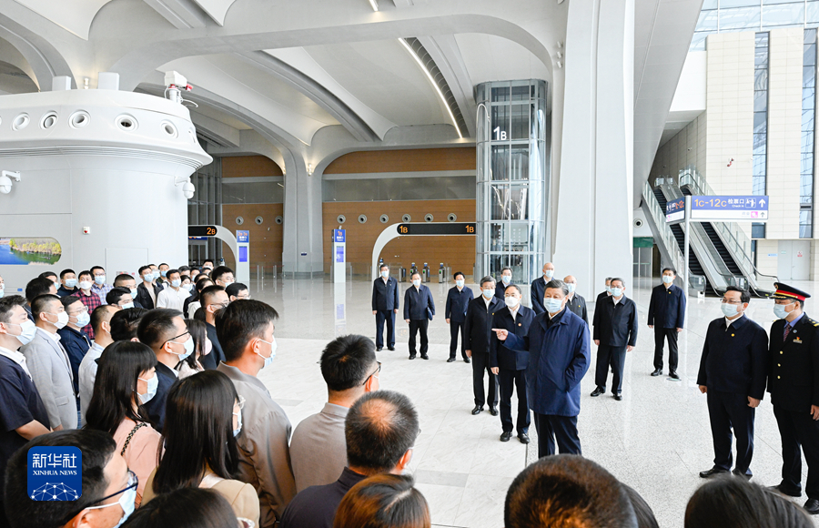 5月10日,中共中央总书记、国家主席、中央军委主席习近平在河北省雄安新区考察,并主持召开高标准高质量推进雄安新区建设座谈会。这是10日上午,习近平在雄安站候车大厅同旅客亲切交流。新华社记者 申宏 摄 当天上午,习近平乘高铁前往雄安新区,抵达后首先考察了雄安站的建设运行情况。雄安站是雄安新区开工建设的第一个重大基础设施项目,具有标志性意义。习近平先后察看站台、候车大厅、站外广场,了解雄安站建设运营和所在的昝岗片区规划建设情况。习近平指出,雄安站是雄安新区的交汇车站,要进一步完善联通雄安站和雄安新区的交通“微细血管”,提升人流物流聚集和疏散的效率。要把昝岗片区建设成为高端高新产业集聚区,让各方来客一到雄安,就能感受到雄安新区扑面而来的现代化新气象。