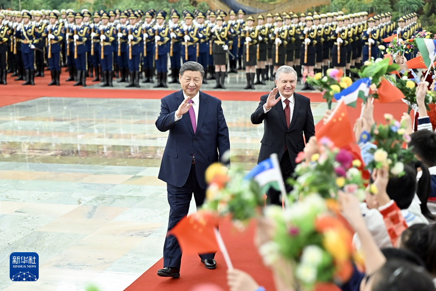 1月24日下午,国家主席习近平在北京人民大会堂同来华进行国事访问的乌兹别克斯坦总统米尔济约耶夫举行会谈。这是会谈前,习近平和夫人彭丽媛在人民大会堂北大厅为米尔济约耶夫和夫人米尔济约耶娃举行欢迎仪式。新华社记者 李学仁 摄 新华社北京1月24日电(记者杨依军)1月24日下午,国家主席习近平在人民大会堂同来华进行国事访问的乌兹别克斯坦总统米尔济约耶夫举行会谈。两国元首宣布,中乌决定发展新时代全天候全面战略伙伴关系,在更高起点上推动构建中乌命运共同体。 习近平指出,32年前,乌兹别克斯坦在中亚国家中率先同中国建交,两国人民传承丝路精神,中乌友好大树根深叶茂,生机勃勃。特别是过去7年多来,我们共同引领两国各领域合作呈现蒸蒸日上的良好局面。建设一个更加富有内涵和活力的中乌关系,是两国人民的共同期盼。双方要以发展新时代全天候全面战略伙伴关系为契机,以高水平政治互信筑牢中乌命运共同体的根基,以高质量共建“一带一路”助力中乌推进各自现代化事业。 习近平强调,中乌关系好,好在双方始终以诚相待、以信相交,面对当前复杂国际形势,双方要更加坚定相互支持。中方坚定支持乌兹别克斯坦维护国家主权、独立、领土完整,坚定支持乌方自主选择发展道路。双方要用好政府间合作委员会等平台,加强战略沟通,全面深化战略互信。中乌发展目标相似、理念契合,双方可积极对接中国支持高质量共建“一带一路”八项行动,深挖传统合作潜能,落实好经贸和投资中长期合作规划,出台更多投资和贸易便利化举措,拓展基础设施、农业高科技园区建设等合作,中方愿进口更多乌方优质产品。双方要及早启动中吉乌铁路项目建设,同步推进“硬联通”和“软连接”,构建立体互联互通网络,助力乌兹别克斯坦由“陆锁国”向“陆联国”转型。中方愿同乌方扩大新能源汽车全产业链合作,开展光伏、风电、水电等重大项目合作,助力乌方绿色经济发展战略,推进可持续发展。双方还要积极开展减贫合作,扩大和深化地方合作,打造更多惠民工程。深化人文交流,继续互办文化日、艺术节,加快互设文化中心,扩大汉语教学合作,支持加强青年交流,中方愿为乌青年来华学习提供更多政府奖学金名额。中方愿同乌方加强协调配合,推动各方团结合作,共同维护上海合作组织正确发展方向,认真落实中国-中亚西安峰会成果,做优做强中国-中亚机制,促进全球和区域治理,推动构建人类命运共同体。