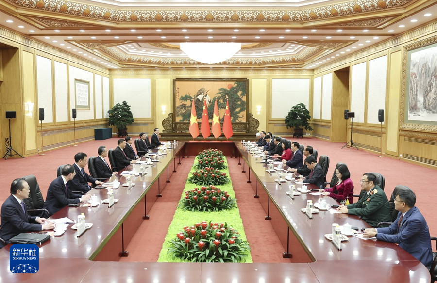 4月8日,国家主席习近平在北京人民大会堂会见越南国会主席王庭惠。新华社记者 丁海涛 摄 习近平请王庭惠转达对阮富仲总书记的亲切问候。习近平指出,去年年底我访问越南期间,和阮富仲总书记共同宣布构建具有战略意义的中越命运共同体,开启了中越关系新篇章。在双方共同努力下,我同阮富仲总书记达成的共识正在得到落实。志同道合、命运与共是中越关系最鲜明的特征,“同志加兄弟”是中越两党两国传统友谊最生动的写照。双方要共同努力,推动中越命运共同体建设取得更多成果,服务各自现代化建设,更好造福两国人民,也为世界社会主义事业作出更大贡献。 习近平强调,当前,国际和地区形势发生深刻复杂变化,捍卫社会主义制度、维护国家稳定和发展,是中越双方共同利益所在。双方要以高水平互信铸牢中越命运共同体意识,以高质量合作夯实中越命运共同体根基,以高度政治智慧推进中越命运共同体建设。中方愿同越方加强治党治国理政经验交流,发挥好中越双边合作指导委员会的统筹协调作用,加快推进共建“一带一路”倡议同“两廊一圈”战略对接,丰富青年、友城等渠道交流。希望双方立法机构深化各层级交流合作,加强立法监督经验等互学互鉴,为增进两国民间友好发挥重要作用。
