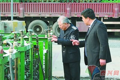 江苏省泰兴市质监局根据换季特点,结合现场安全监察的工作要求,近日对全市特种设备使用单位进行专项检查,重点检查重点企业、重点项目、重点设备和重点部位,发放特种设备等相关法律、法规,指导企业加强对特种设备的检查维护保养,做到防患于未然。图为该局特种设备安全监察人员对某企业压力容器进行检查。