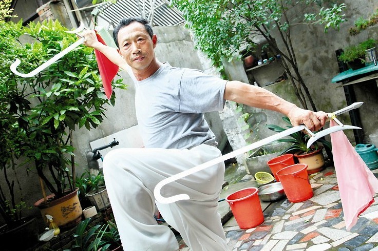 ①瞧这把式,可不是花拳绣腿。 ②这些年,李明福带了不少徒弟,他现在还是社会体育辅导员。 ③李明福的 “兵器库”,这些健身器材大部分是李明福自己动手制作的。 ④李明福自己打造的燕子镖。 9日上午,家住泰兴市黄桥镇区的李明福来到泰州体育馆,参加由江苏省武术运动协会举办的武术比赛。 李明福的比赛在下午。中午休息时,他拿出双剑活动一下筋骨,没想到一个套路舞下来后,周围站满了同行,“你舞得太好了,让我们怎么上台啊?” 当天下午,李明福参加了两个项目,一是男子老年A级剑术;二是男子老年A级双刀。两个项目均以最高分夺魁。 李明福今年61岁,习武已有46年。 少年时,遇到一个姓何的老头,手拿一把锈迹斑斑的单刀,舞得虎虎生风。李明福佩服得五体投地,拜何老头为师。 师傅教刀枪剑钩,可当时又买不到,李明福就向师傅讨来图纸,利用在工厂上班的机会做。他先请铁匠打出坯子,然后拿到车间去打磨,再安上剑把和刀把。 日出日落,春秋冬夏,李明福坚持每天练武,单刀、双刀,单剑、双剑,长枪,双钩……李明福越练越健康,1.68米的身高,体重140斤,浑身上下没有赘肉,说话嗓音洪亮,走路步履轻巧。 朋友纷纷上门拜师,有的还带着孩子一起来学。李明福来者不拒,名声越来越响,不少工厂都请他上门,教职工们习武健身。 一些想报考武术专业的高考学生,听说李明福后纷纷登门拜师。为了让孩子们在最短的时间里学会几个武术套路,李明福不分早晚地教。每天傍晚,老伴都要蒸二十几个馒头送给徒弟们吃。目前,已经有十几个徒弟考上了心仪的高校。 教人习武健身,李明福分文不收,甚至还倒贴钱为徒弟买刀剑家伙,购置运动服。为了以武会友,李明福多次举办武术交流活动,邀请周边县市的武术爱好者参加,每次都要贴上四五千块钱。“心要宽,体要松。”李明福说,因为崇拜侠客,他爱上了武术;为了强身健体,他坚持每天习武。武术不但给了他健康的体魄,还给了他快乐。 记者 姚翔/文 张庆龙/图 |
