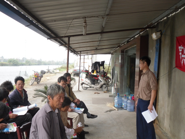 10月6日上午9点,江苏泰州泰兴市曲霞镇国平养殖场塘口边人头攒动,十几名水产养殖示范户聚集在河蟹养殖塘口,原来是渔业科技入户专家组利用国庆假期正在举办培训班。 专家组成员钱华就在塘口岸边认真讲解了“河蟹养殖后期管理技术”和“秋冬水质调控技术”,集中授课后,组织大家进行了养殖经验和信息交流并参观了示范养殖户王成的河蟹养殖情况,大家畅所欲言,针对今年的养殖情况和存在的问题,现场询问,大家根据自身经验,提出一些解决的建议,技术指导员、专家综合各个养殖户的意见,提出针对性的解决方案。 会后示范户朱林祥不禁感慨:这次的培训班走出了会议室,深入到塘口接触到实际,增加了感性认识,获得了很多有用的信息,学到了不少实用技术,真是渔业科技入户项目的‘走转改’。 |