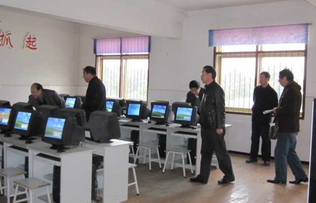 12月 1日,省督导组兵分两路,分别对泰兴市第二高级中学、泰兴市实验初中、姚王初中、大生小学和七圩小学等5所学校教育技术装备的建设、管理和使用进行了现场督导。督导组一行首先听取了各学校校长的工作汇报,依次实地查看了学校图书馆(室)、理化生及科学实验室、计算机室、多媒体教室、音乐美术、体育器材室等,查阅了学校教育技术装备管理和使用的相关资料,询问了学校图书室的藏书量、图书流通率、体育器材的使用及电教设施的投入和装备等管理、使用情况,并对两所初中学生物理实验进行抽测。