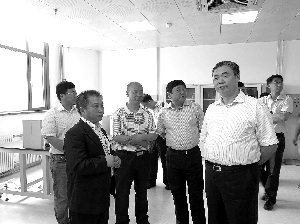 6月14日,中科院大连化物所—江苏泰兴共建选择氧化工程技术研究中心签约仪式在大连化物所举行。大化所副所长刘中民建议双方结合泰兴市资源与企业需求情况,积极开展多领域合作,发挥化物所综合技术优势,推动技术成果转化。泰兴市委副书记孙云介绍了泰兴市的自然资源与现状。他表示,将以研究中心建设为契机,进一步拓宽与大连化物所的合作,促进泰兴市科技进步和经济发展。 图为刘中民(左)陪同来宾参观洁净能源国家实验室。(本报记者 陶加 摄)