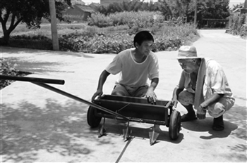 □本报记者 林念苏 通 讯 员 封建忠 国 富 58岁的季生龙,家住泰兴市济川街道房元村一组,是泰兴市北城初中的一名化学老师。 课堂上,他是循循善诱的良师;讲台下,他还是一个“发明家”。近几年来,季生龙利用业余时间,发明了十多种小型农机具。其中,由他发明的手持水稻播种机,获得了国家专利证书,并已在本地及河南、四川、湖北等地被推广使用。 知农民苦,萌生发明念头 季生龙家在农村,每逢节假日、双休日,他都得帮老伴一起打理自家的两亩地。 2006年以来,泰兴农村推广直播稻技术,大大减轻了农民的劳动强度。但由于是人工播种,秧苗常常出现稀密不均的现象,一亩地种完了往往还得“返工”,重新将过密的秧苗移栽到苗稀的地方,这样一折腾,一亩地又得多耗费2至3个工日,且有时候还会损伤秧苗。 脚踩淤泥,头顶烈日——一天下来,年轻力壮的小伙子都疲惫不堪,年近花甲的老季更是累得腰酸背痛,苦不堪言了。“能不能发明一种既省力、播种又均匀的水稻播种机呢?”季生龙萌生了这样的想法。 一个整天和化学试剂打交道的化学老师,要转行当“发明家”,能行么?季生龙较上了真,他把全部的业余时间都投入到发明中。一次出差,他从拉行李箱得到启示:手持水稻播种机,是不是可以在人工手扶犁上加个装稻种的漏斗,一边犁地一边下种?有了这样的设想,季生龙先后画了数百张设计图纸,一次次地失败,又一次次地修改。经过反复试验,2010年5月,季生龙拿出了播种机样机。 多次改造,省事省力省钱 季生龙发明了水稻播种机,这在乡里成了一个大新闻,乡亲们都赶过来看热闹。机器看起来小巧玲珑,这小玩意儿真的能行么?“实践是检验真理的唯一标准嘛!”季生龙呵呵一笑,装上稻种推着播种机就往大田里去。 1米,2米……在大田里,季生龙推着播种机走了四五米,大家都惊呼:“嘿!这播种机还真管用!使起来毫不费力,播下的种子又均匀。”同组的村民季华东和季华明也试了一下,一人一机1天种了十多亩地——这下,大家都信服了。 季生龙发明播种机的消息很快像长了翅膀一样,连邻村的农民们都争相前来观看。为方便更多的乡亲们,季生龙先制作了4台样机,免费赠送给本村农民试用。在使用过程中,针对大家反馈回来的信息,季生龙又对播种机进行了多次改造。 2011年,季生龙向国家专利局申请了发明专利。 “这两年,我家一直使用这种水稻播种机。由于播种均匀,出苗后不需要再去密补稀,一亩地比从前要省两三个工日。”季华明说,不仅如此,用播种机播种的田,每亩还节约两三斤稻种、省去30多元的机械盖种费;由于长出的秧苗透风透光,每亩田可以少施20多斤尿素,亩产量能净增150多斤。” 触类旁通,教师变成“全能手” 手持水稻播种机发明成功后,季生龙对于发明农机的兴趣更是一发不可收了。他触类旁通,又相继发明出深受农民欢迎的手持小麦播种机、手持油菜播种机、挖墒清土犁和用于收获花生、马铃薯、芋头等块根类植物的多功能挖掘叉、秧绳自动收放器等。 几年来,季生龙不仅自学学会了车工、钻床工、电焊工等多种技能,而且还学会了木工活儿。除了“发明家”,他又主动当起了村里的“修理师”,每逢乡邻们刀柄断了,铜勺坏了,火钳短了,只要找上门来,他都乐意帮助。乡亲们使用的铁锹、剪子、刀具钝了,他也总是用自己的打磨机帮助打磨;他还利用废旧洗衣机上的电动机,制作了两台鼓风机,免费借给村民们扬谷。 |