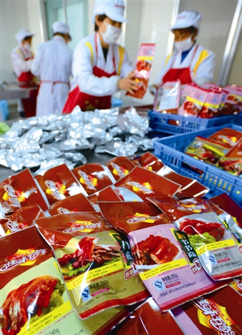 记者 陈亚斌 通讯员 徐界平)“我把二维码印在名片上,只要手机轻松一扫,就能看到‘猪五宝’的介绍和我的个人信息。”创意面前,泰兴市黄桥镇怪味鲜食品有限公司总经理王良扣笑称自己是“黄桥第一个会玩二维码的卤菜店老板”。而在厂子员工和附近村民的眼中,王良扣还有另一个“第一”——第一个卤出“黄桥猪五宝”的人。 提起“猪四宝”,久居黄桥的居民想必并不陌生。这道发源于黄桥镇刘陈地区的百年卤味,具有补虚、滋阴、养血、润燥的功效,虽早已成为当地居民餐桌上的主角,却一直未能打开外地市场。5年前,王良扣在传统“猪四宝”基础上卤出 “猪五宝”,并于今年9月正式获批了“猪五宝”商标,看似简单的加法背后,却帮助这道黄桥名吃成功走出泰兴,走向全国。 巧做“4+1” “拱”到食客“麻筋” “‘猪五宝’的名气是‘拱’出来的,这一拱正好拱到了食客们的‘麻筋’!”王良扣说。 王良扣口中的“拱”,指的是猪的“拱嘴儿”,其实就是猪的嘴唇。“老人们常讲,经常活动的肉才好吃,嘴唇吃起来肥而不腻,其实是整头猪身上最好的肉,也正是这个‘拱’字引得食客们趋之若鹜。”王良扣说。 “一头猪一般只能取三两猪拱嘴儿肉,这就相当于吃鸭只吃鸭舌一般珍贵。”王良扣告诉记者,传统的“猪四宝”之一“猪头肉”中,一般同时混有猪拱嘴儿、眼膛肉等多个部位,市场价至多20元一斤,如今只卤拱嘴儿,品质提高了,价钱也提高到每斤50元。 传统的“刘陈猪四宝”包括卤制的猪头肉、猪尾巴、猪舌头和猪耳朵,“猪五宝”选料更加精细,将猪头肉改为单纯的卤拱嘴儿,并添了猪蹄一宝。“长久以来,‘猪四宝’一直以又香又糯、肥而不腻闻名,能达到这种口感的原料,除了猪头上的四宝,还有一个猪蹄,于是我们就决定将猪蹄列为第五宝。”王良扣介绍。 没想到的是,正是这道猪蹄成了“猪五宝”叩开外地市场的敲门砖。“东北、华北、浙江等地顾客尤其钟爱猪蹄,尝了猪蹄,咱就不愁他不把五宝吃个遍。”王良扣说。 “五宝”融四味 尝遍“川、徽、淮、沪” 常吃卤菜的市民大多都有这样一个感觉,大大小小的卤菜店里,猪头肉、猪耳朵、猪尾巴等菜吃起来通常都是一个味儿,应该是同一锅卤汤“煨”出来的。 “我们把‘猪五宝’装在一起卖,要都是一个味儿,外地的顾客怕是不会买账。”王良扣说,“猪五宝”中的每一宝都有不同的风味,体现不同的特色,味蕾上层次分明的记忆,正是产品持续热销的奥秘。 王良扣的妻子告诉记者,办厂之前王良扣开过卤菜店,为了学好手艺,他先后共拜过四位师傅。巧的是,这四位师傅分别来自四川、安徽、扬州和上海,让王良扣能够博采众长,兼顾四味。 记者现场打开一箱“黄桥猪五宝”礼盒,其中既有川香的泡椒猪尾,也有徽派的五香猪蹄。若你想尝一尝传统的淮扬口味,不妨试一试卤香的猪拱嘴儿和盐水猪舌。要是你喜好海派风味,礼盒里还有香糟风味的猪耳等你品尝。 为了更好地迎合外地市场,王良扣还给土生土长的猪头肉、猪尾、猪舌、猪耳、猪脚换上了“洋气”的新名字,摇身一变成了“馋嘴八戒”、“望君节节高”、“酱香口条”、“千层脆耳”和“鸿运猪蹄”。 “别小看这些名字,它们可是我和四位师傅商量了一个礼拜才定下来的,如今看来市场反映很不错!”王良扣说。 养猪搞“外包” “链”动农户增收 随着“猪五宝”品牌的打响,王良扣的厂子里每天的生猪需求量达到200多头。猪从哪儿来?一时间成了困扰他的头号难题。 “我也曾想过从浙江、山东等地收猪,但收来的猪肉质量难免良莠不齐。”王良扣介绍,三年前,他开始尝试把养猪业务“外包”给黄桥当地农户,如今已经带动了60多户农户一起发起“猪财”。 一位替王良扣养猪的村民告诉记者,“外包”养猪从猪崽到饲料全部由怪味鲜公司免费提供,并由公司按市场价统一收购,公司还会派专人定期指导养殖技术和防病防疫。遇上生猪行情不好的年份,王良扣还会给农户制定最低保护价,去年一头猪的保护价为220元,今年已经涨到了250元。 “这样一条品质有保证的上游供应链,不仅确保了生猪供应量的稳定,更确保了生猪原料质量的安全,成了‘猪五宝’产品进入大城市、大超市的一把金钥匙。”王良扣说。 如今,“黄桥猪五宝”共开发出6种不同规格的包装,产品远销到东北、上海、浙江、四川、海南等地,并且直接摆上了乐天玛特、世纪联华、大润发等大型超市的货柜,年产值达到700多万元。 |