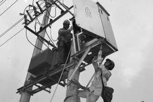 8月26日,邳州市安置500户拆迁户的康居佳苑提前送电,比居民入住小区提前了31天送电。图为,邳州供电公司正在进行紧张的施工。 周万海 董标第 沈向明