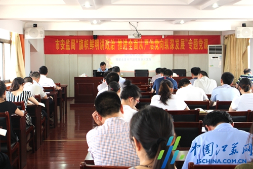 | 中国江苏网7月24日泰州讯 为切实增强全体党员干部旗帜鲜明讲政治的思想自觉和行动自觉,近期,泰兴市安监局党支部书记为全体机关干部上了一堂题为《旗帜鲜明讲政治,推进全面从严治党向纵深发展》的专题党课。
