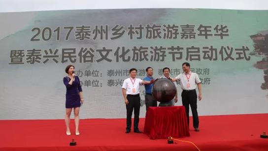 | 9月23日,2017泰州乡村旅游嘉年华暨泰兴民俗文化旅游节在泰兴市黄桥镇祁巷村小南湖景区启动。江苏省旅游局、泰州市人民政府、泰兴市人民政府、泰州市旅游局及相关涉旅部门领导、省内各地级市旅游局负责人、泰州各市(区)旅游局负责人、泰兴市级相关部门、泰兴各乡镇负责人以及省内外各有关旅游企业(单位)500余人参加了启动仪式。