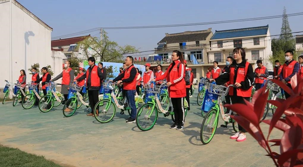 原来,这里正在举办“绿色骑行、生态普法”活动启动仪式。泰兴市司法局和宣堡镇普法志愿者,通过骑行的方式分散到宣堡镇各个角落,将普法宣传册送进企业、学校、家庭和景区。