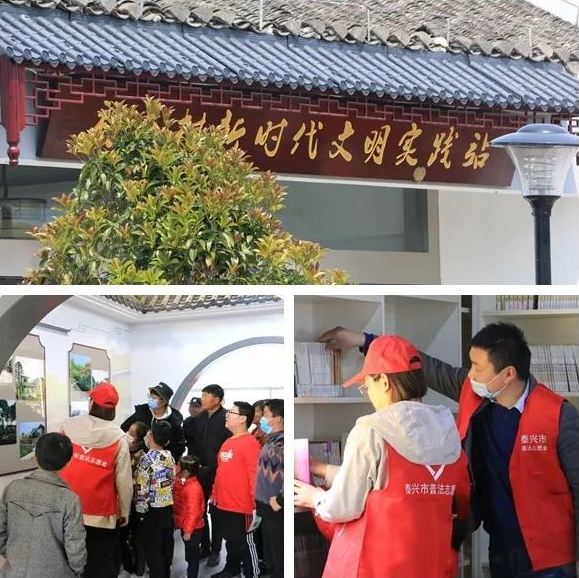 红色—文化+普法: 上午10点,在泰兴市黄桥镇祁巷村,普法志愿者以导游的身份,带领青少年,参观了党建教育馆,还开展模拟法庭等活动,将法制文化融入红色旅游中。这样的方式,让小朋友们乐在其中,学在其中。